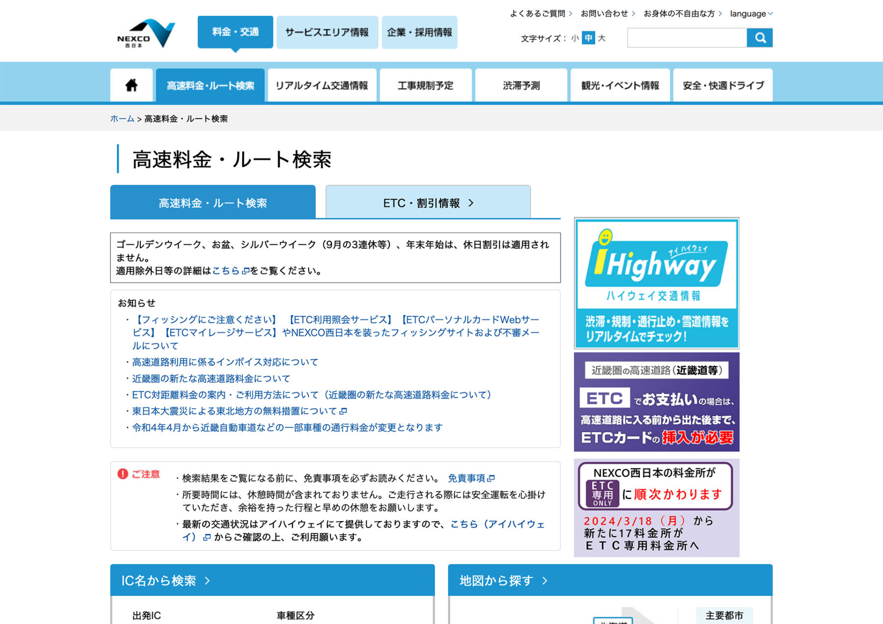 NEXCO西日本が運営するETC割引の情報サイト